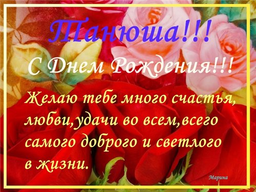 Не зря ты себе выбрала такой ник. Оставайся такой же, больше ничего не нужно. Если бы все пожелания ко Дню Рождения исполнялись, все люди были бы счастливы, богаты и здоровы. Я пожелаю тебе, Танечка, чтоб бОльшая часть из того, что тебе пожелают сегодня, воплотилась в реальность, а твои собственные мечты осуществились на все сто!