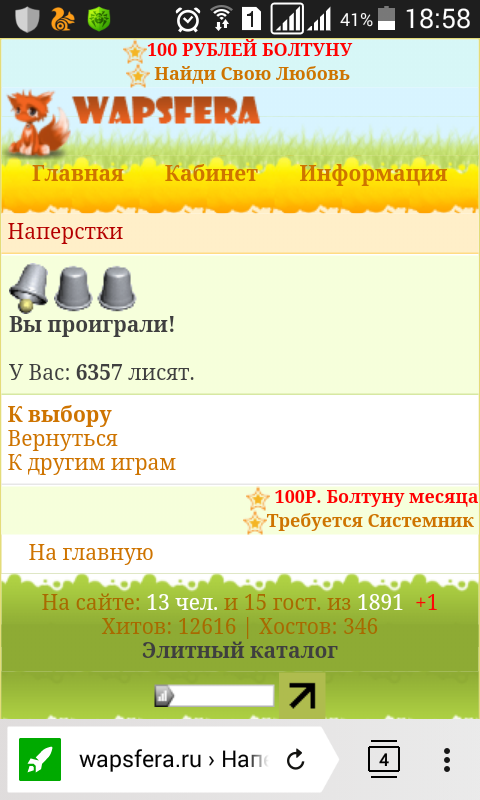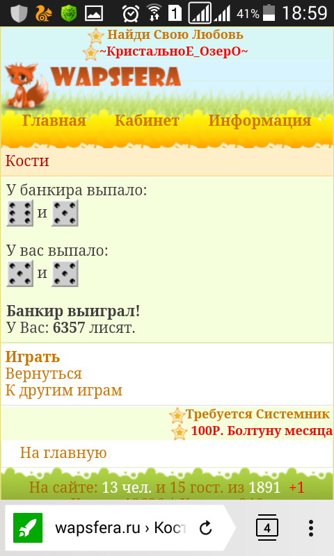 O_oRiGiNaLka, А ничего что при игре ничего не начислялось? Об этом было написано!Дорогой товарищ админ. почитайте все коментарии в этой теме)) я сама лично играла на лисят и выигрывала)) потом когда вы игры отключили я 5000 лисят обменяла))