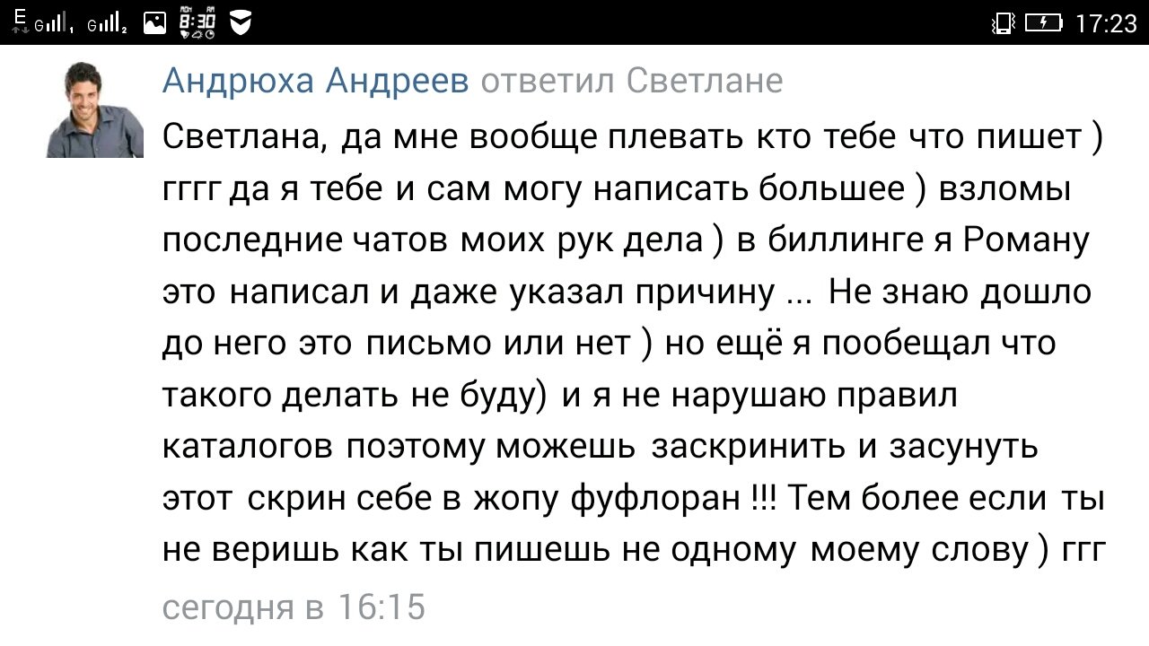 А это кто вообще с этим ником,Лиль прежде чем быть такой вспыльчивой надо разобраться,у меня много Недоброжелателей которые таким образом подставляют чат.....Мои адиины точно не будут рекламит на чатах....дай мне софт рекламщика я посмотрю у себя этого клоуна.....