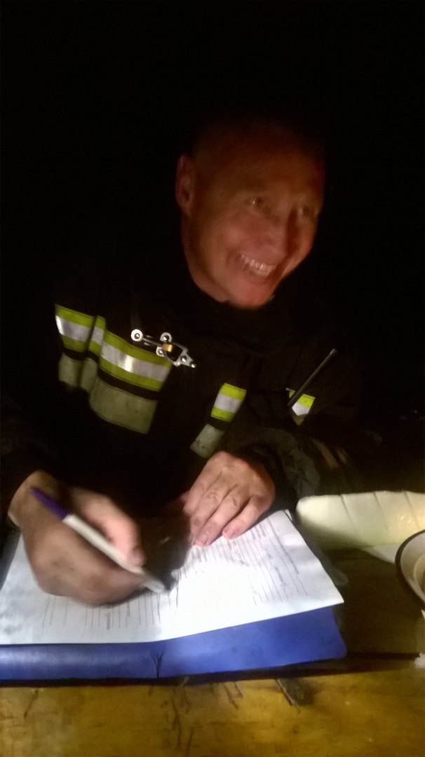 На фото Евгений, командир данной ситуации, фото было сделано случайно и неожиданно, в момент после пожара, для него это будет большим удивлением)) зато видно действительность его работы, как он доволен и рад... Со словами: "Ну, что! Все живы, все здоровы! И это самое главное