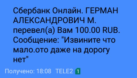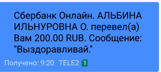 Ещё один анонимный перевод. На 1000 рублей. Спасибо вам большое)))