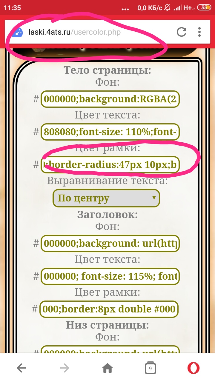 Смотрим чат ласки, главный стиль: строка рамка тела